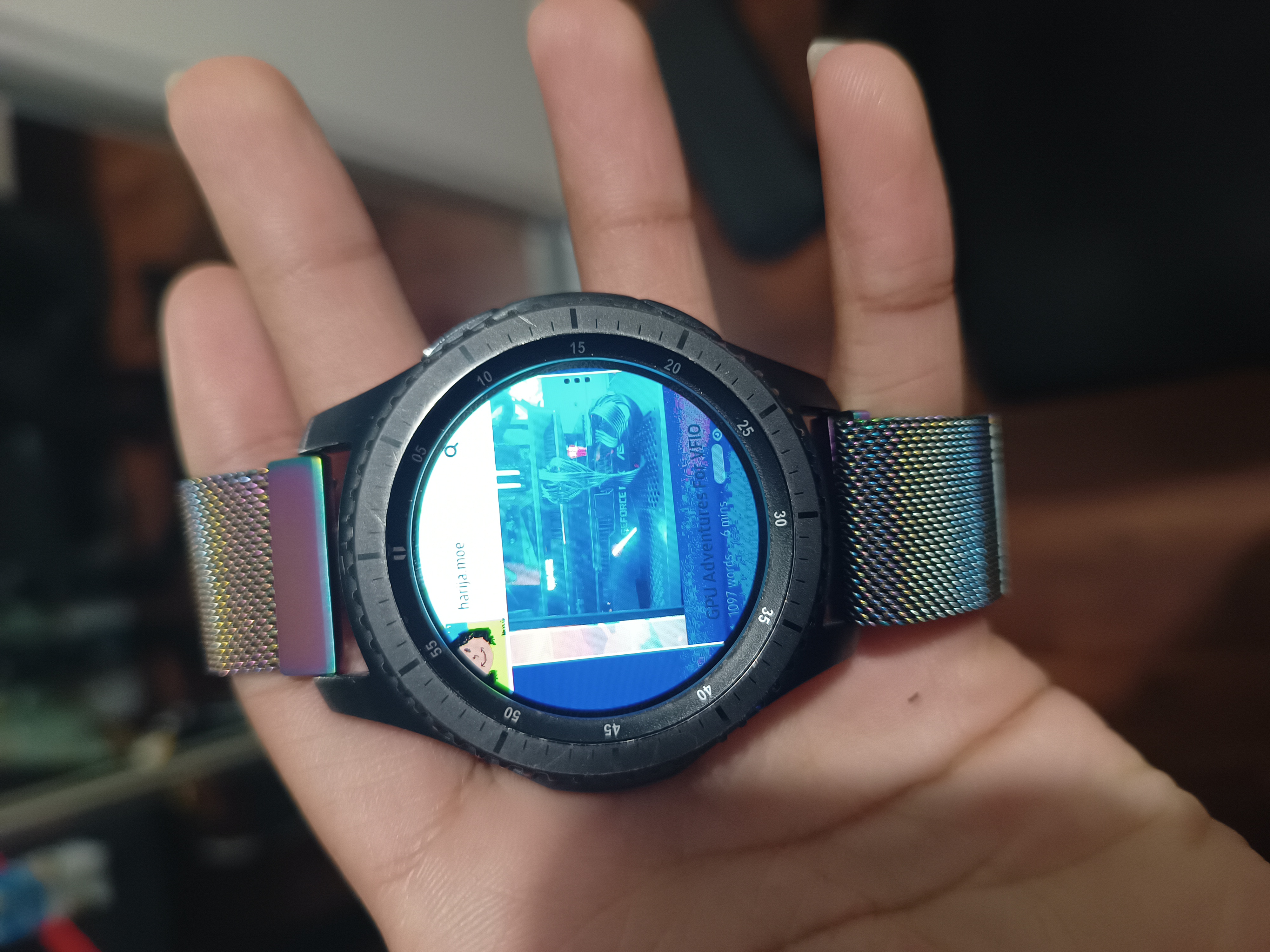 Using the rotating bezel to navigate around screens is also really fun, especially in comparison to the sad little capacitive button on the Fitbit lol. Web browsing is also a neat feature which surprisingly holds up after all these years - I was able to read stuff on harija.moe perfectly fine!