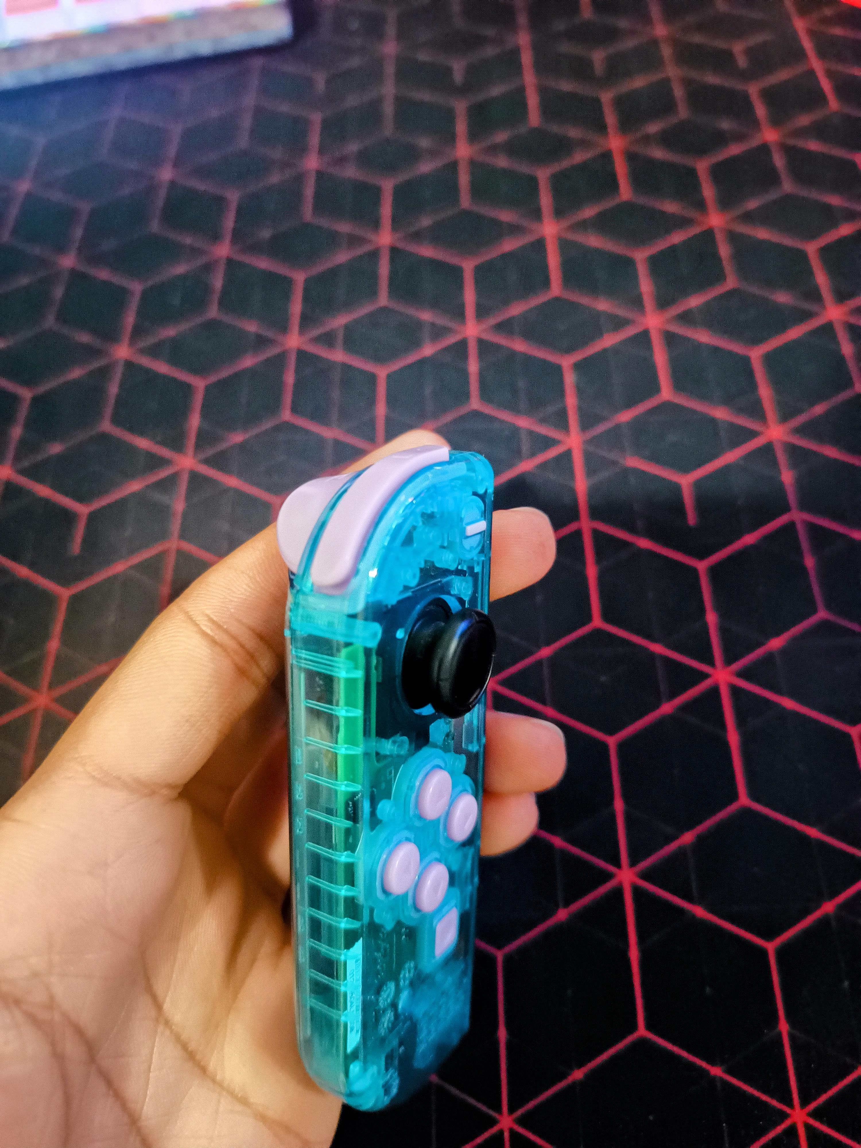 Fast forwarding to a while later, I decided to try modding the console physically as well, with a transparent blue shell for the console and joy-cons, as well as purple buttons for the joy-cons from AliExpress. For me personally it was a nightmare moving the Joycon mainboards between the shells – and rightfully so, since I guess Nintendo didn’t design them with people doing silly mods like this in mind.